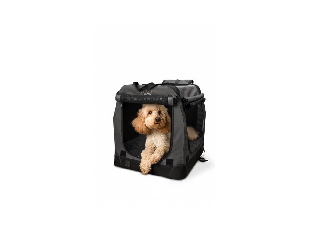 Velmi oblíbený, kvalitní německý skládací přepravní box pro psy TRENDPET. Perfektní doplněk na cesty, do auta i do domu. Plní funkci pelíšku, boudy a lze do ní psa zapnout a tak ho zajistit před útěkem. Cestovní box lze snadno složit a je k dostání v 5 velikostech.