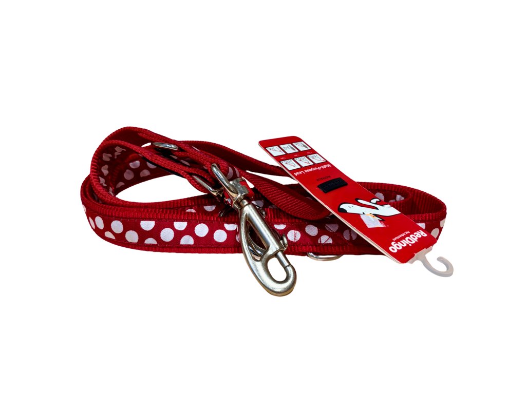 Red Dingo vodítko – White Spots on Red – 25 mm x 2,0 m