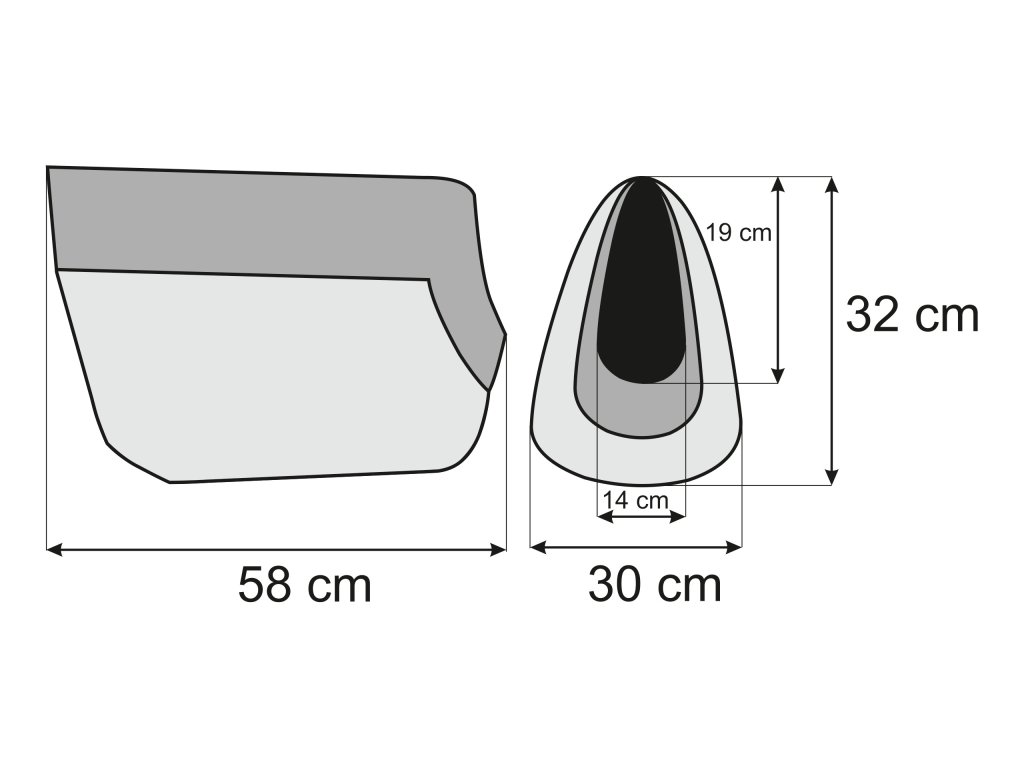 Rozměry tašky pro psa (vnitřní rozměr je cca o 2 cm menší)