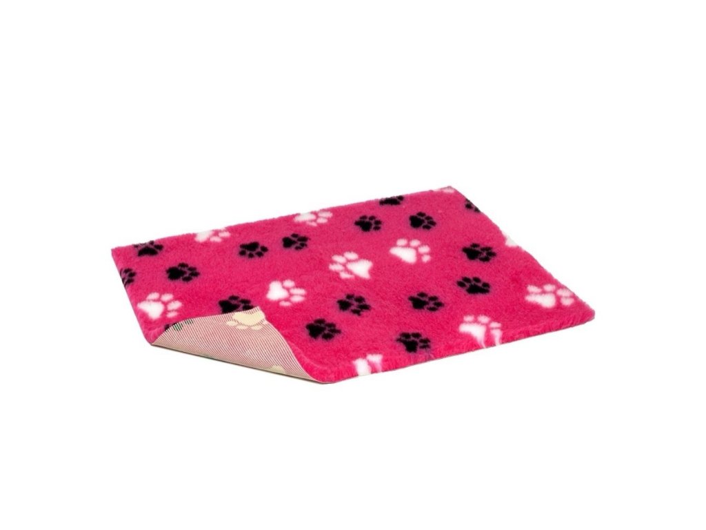 Vetbed protiskluz / Drybed růžová černé a bílé packy DELUXE, vlas 30 mm